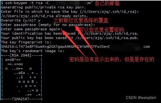 打开git bash输入 ssh-keygen -t rsa -C "自己注册git的邮箱"。