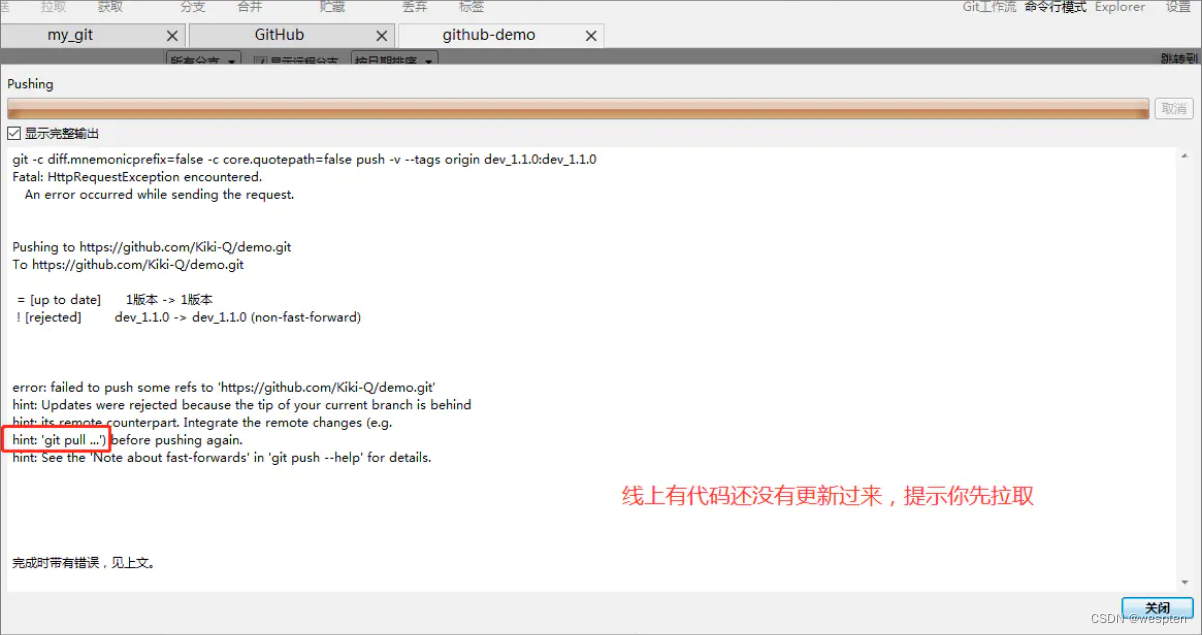 进行推送时,有时会出现如下图所示的情况: