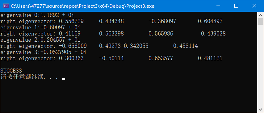printf("right eigenvector: ");
